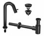 Ink Kranen Combiset 5A fonteinkraan staand gebogen hoog met always open plug en sifon Mat Zwart - 9902481